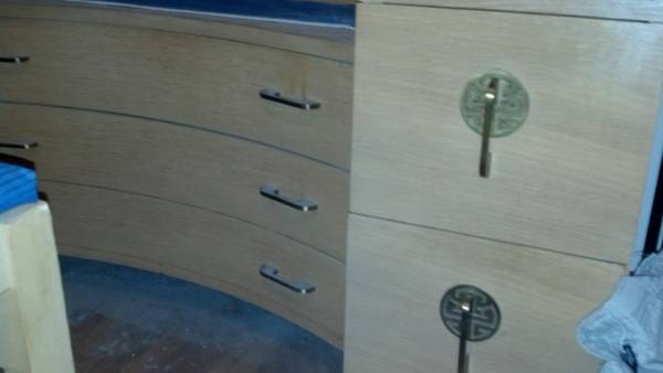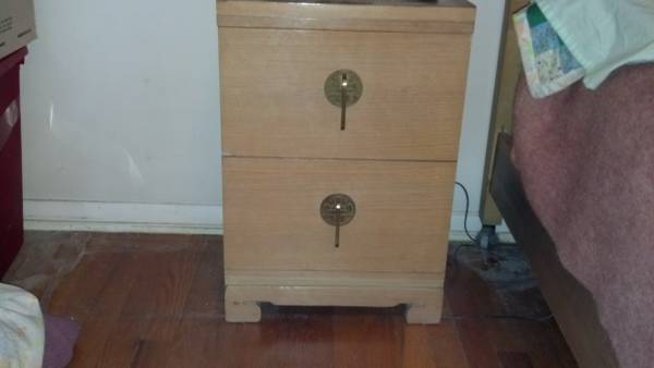Full size bed with headboard/footboard, vanity table with mirror and night stand. This set has been in my family since it was brand new and is make of solid wood. We just don't have room for it anymore. The headboard has a few scratches but all other pieces are in great shape. This would make a great set for a guest room in your house. Mattress and box spring not included