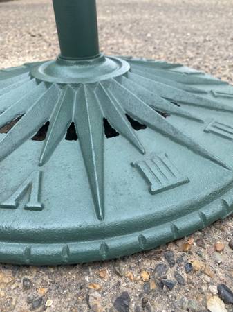 Heavy Duty Outdoor Round Cast Iron Sundial Base Umbrella Stand. Ideal for Decks, Balconies, Patios and Poolside. 13.5 Inches Tall 18.5 Inches Wide