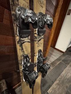 The skis have been waxed and the Salomon Warden 11 were put on last year (Skis have been remounted). Skis are 158 cm.